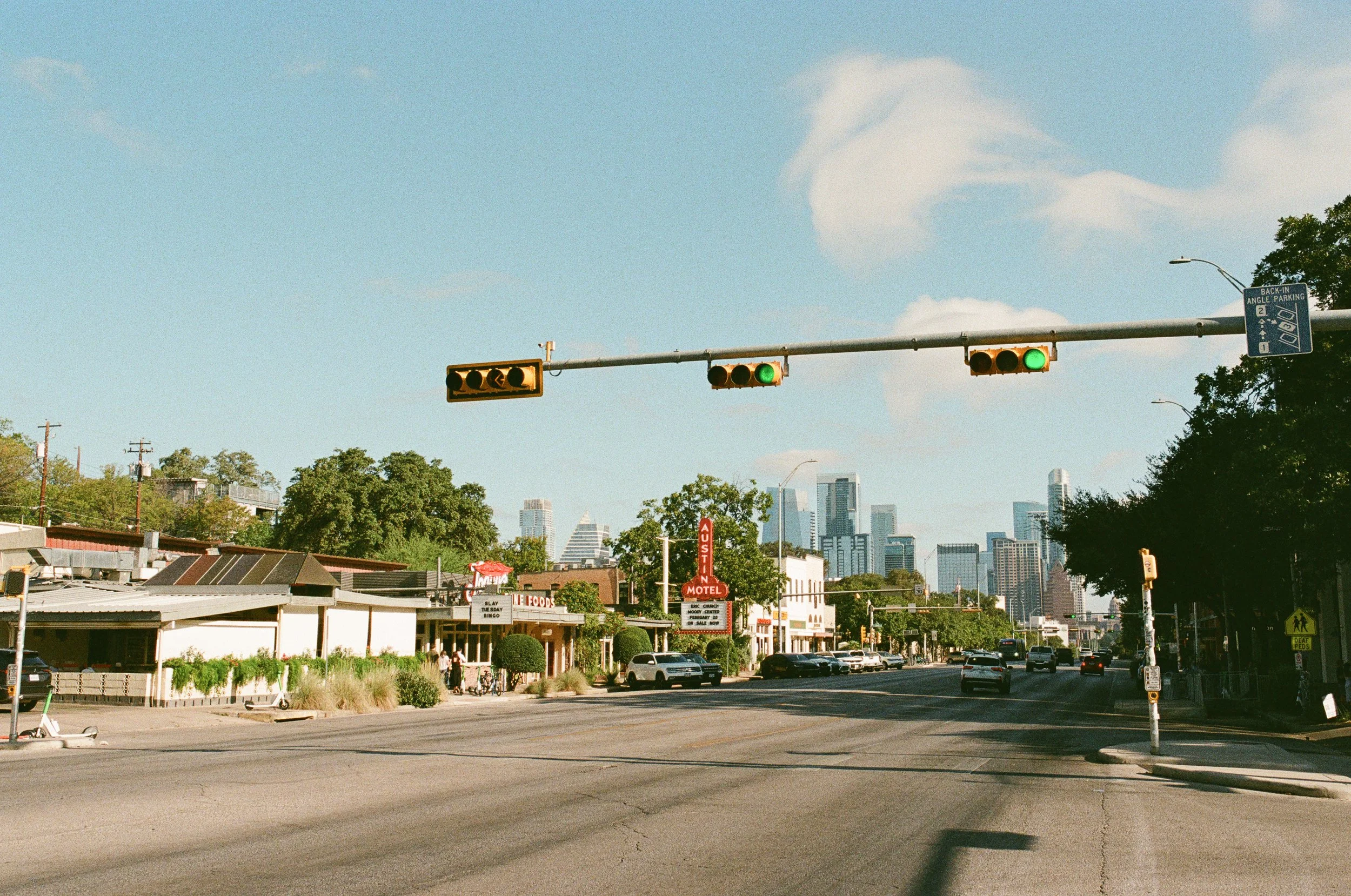 South Congress Ave with a view of downtown Austin, Texas. Shot on 35mm film.